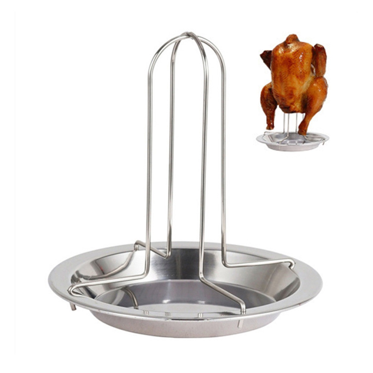 Accessorio barbecue di semplice montaggio e utilizzo, basta mettere le staffe nei fori della piastra di cottura. Adatto per la cottura all'aperto di pollo, anatra, tacchino di piccola taglia.
