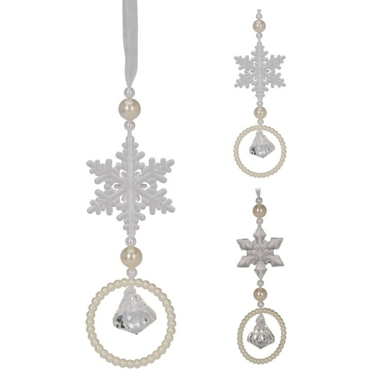 Pendente fiocco di neve con perle e diamantino H14 cm