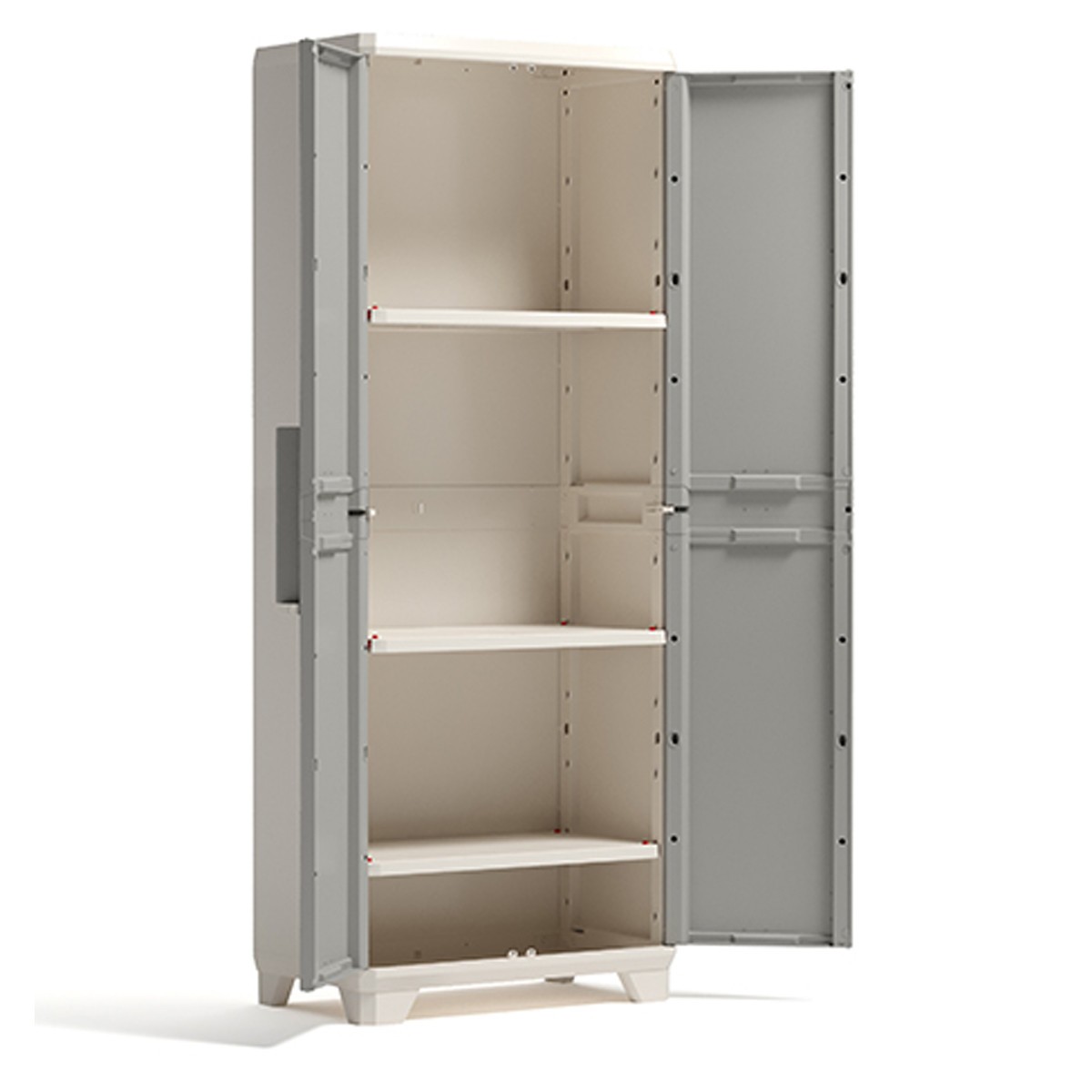 KeterKeter armadio Linear Wood alto è un armadio multiuso realizzato in resina con caratteristica finitura legno. Grazie al suo design essenziale Linear Wood è un'ottima soluzione per arredare i tuoi spazi interni ed esterni e tenere in ordine la tua casa. Armadio con 4 ripiani regolabili con una capacità massima di 15 Kg ciascuno, ampia maniglia, predisposizione per il lucchetto e piedini regolabili. Adatto per la sistemazione e la conservazione di utensili, detersivi, provviste, documenti, giochi.