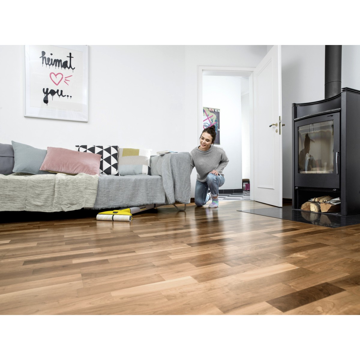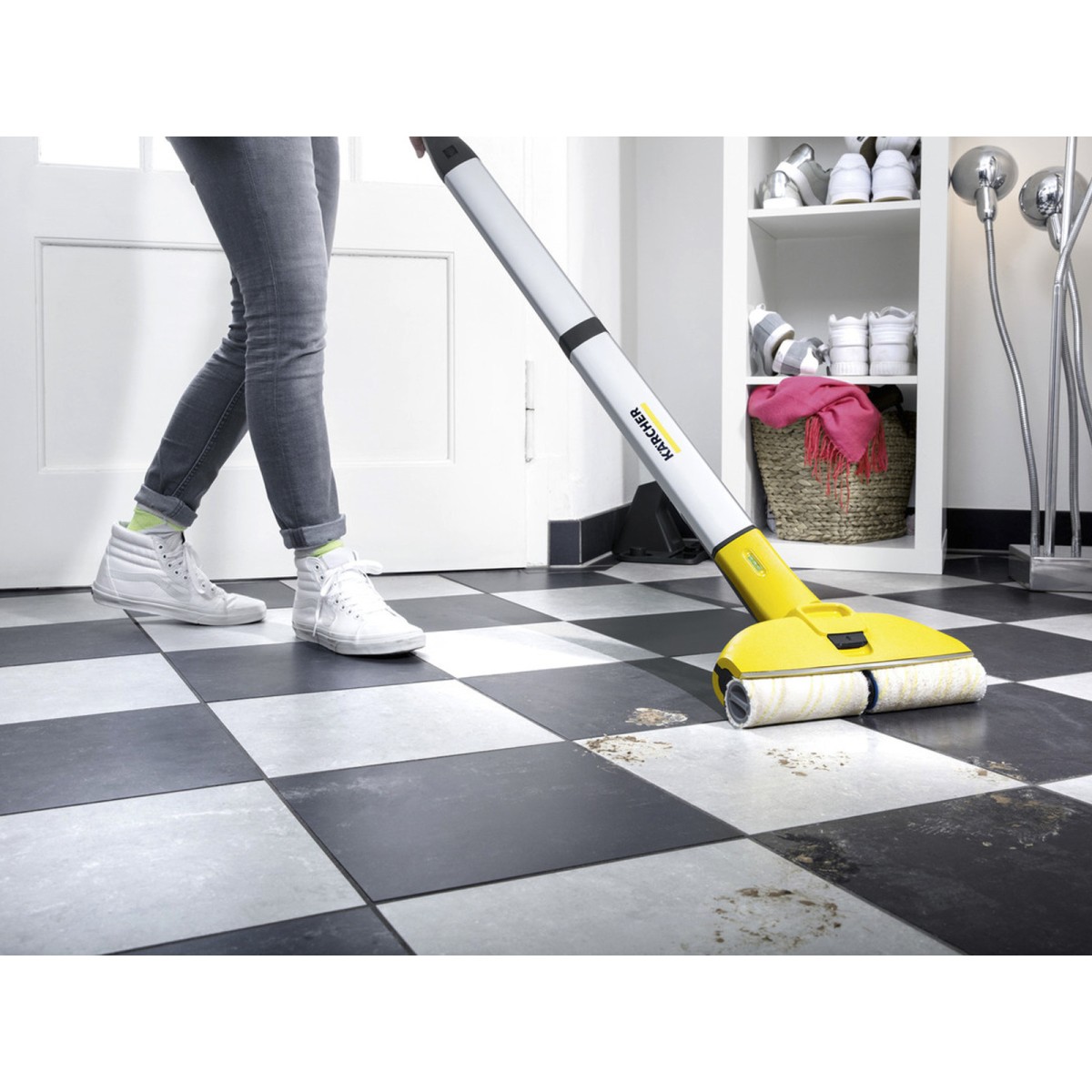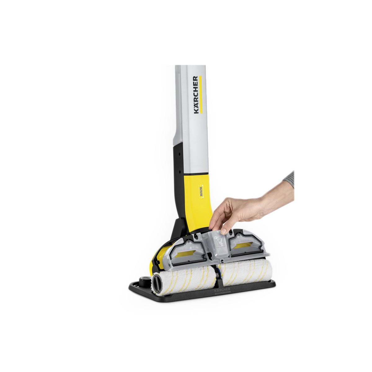 Grazie all'innovativa funzione autopulente è ora possibile, con FC 3 senza fili, dire addio al tradizionale mocio. I rulli rotanti sono costantemente bagnati con acqua pulita mentre lo sporco raccolto finisce in un serbatoio apposito. Grazie a questo sistema i pavimenti sono fino al 20% più puliti rispetto all'utilizzo del tradizionale mocio. Inoltre con il suo nuovo design riesce non solo ad arrivare facilmente sotto i mobili, ma consente anche di risparmiare spazio. È dotato anche di un giunto girevole per pulire senza il minimo sforzo angoli e spigoli. Il pavimento è asciutto in 2 minuti, il che lo rende particolarmente adatto ad ogni superficie (incluso il parquet). Massima libertà di movimento grazie alla potente batteria al litio, non più legata alla presa di corrente. L'intuitivo display a LED fornisce un feedback continuo sul livello della batteria. I "wiping" test hanno dimostrato l'efficacia di pulizia di FC 3 senza fili superiore fino al 20% rispetto ad una normale scopa con la copertura in tessuto. I dati si riferiscono alla media dei risultati dei test considerando la raccolta dello sporco e la pulizia dei bordi.
