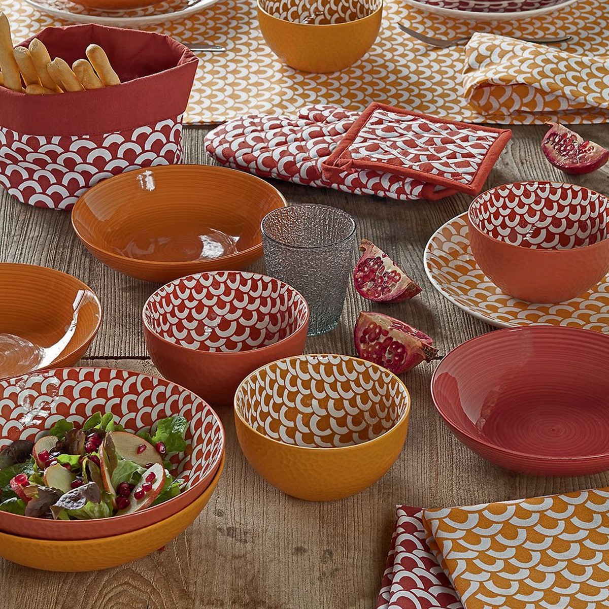 Bowl Torres di Tognana per arredare la tavola in modo attuale e contemporaneo. Questo bolo giallo ocra da 14 cm è ideale per servire piccole entrées ed aperitivi o per la colazione, e può essere abbinato agli altri accessori per la cucina e al tessile della linea per un servizio tavola completo.