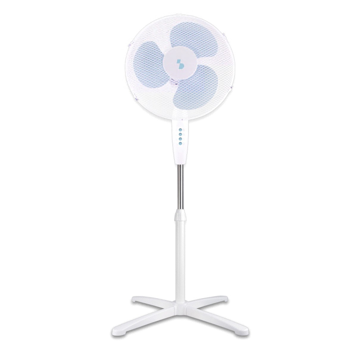 BeperBeper ventilatore a piantana con 3 robuste pale e pratica griglia di protezione in acciaio da 40 cm di diametro. L'ampia base a croce permette maggiore stabilità a terra. Con questo ventilatore puoi impostare tre velocità di ventilazione scegliendo tra 1 (bassa), 2 (media) e 3 (alta), con possibilità di regolare l'altezza fino a 125 cm. Il ventilatore è completo di oscillazione automatica e inclinazione regolabile, motore da 40W e ampia base a croce ad incasstro.