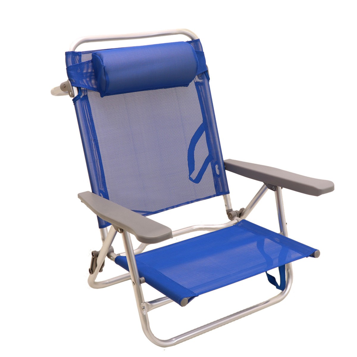 VerdelookSpiaggina reclinabile e pieghevole con struttura in tubo di alluminio con diametro 22 mm. Piccola sedia sdraio leggera e robusta con braccioli e cuscino poggiatesta imbottito removibile, seduta e schienale in textilene.
