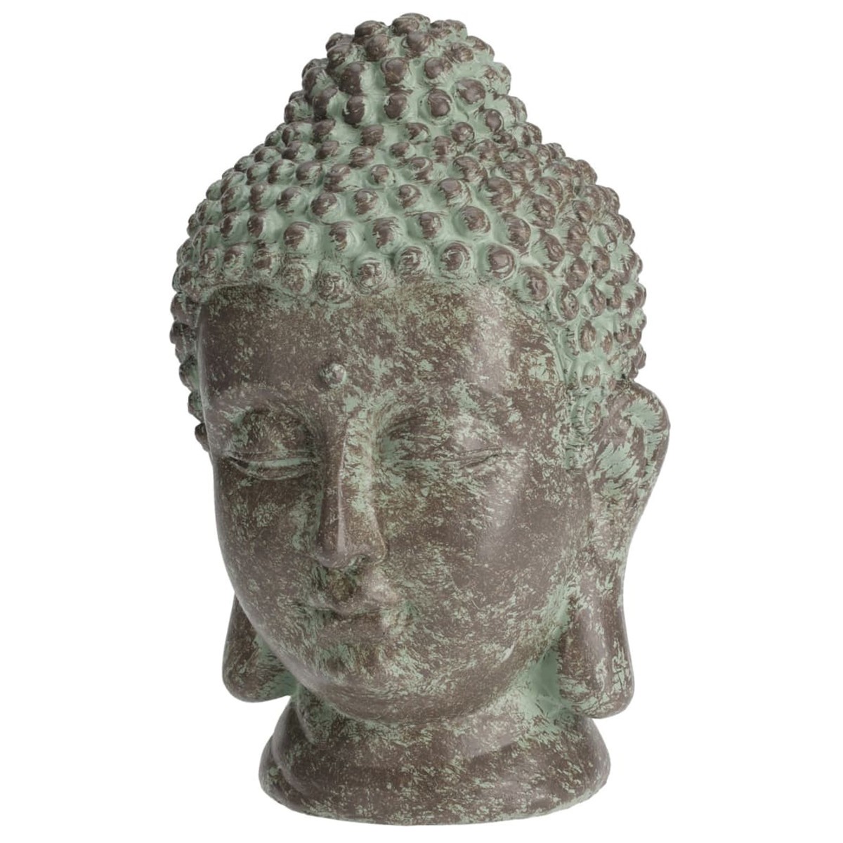 La scultura testa del Budda dormiente è alta 23 cm con effetto anticato.