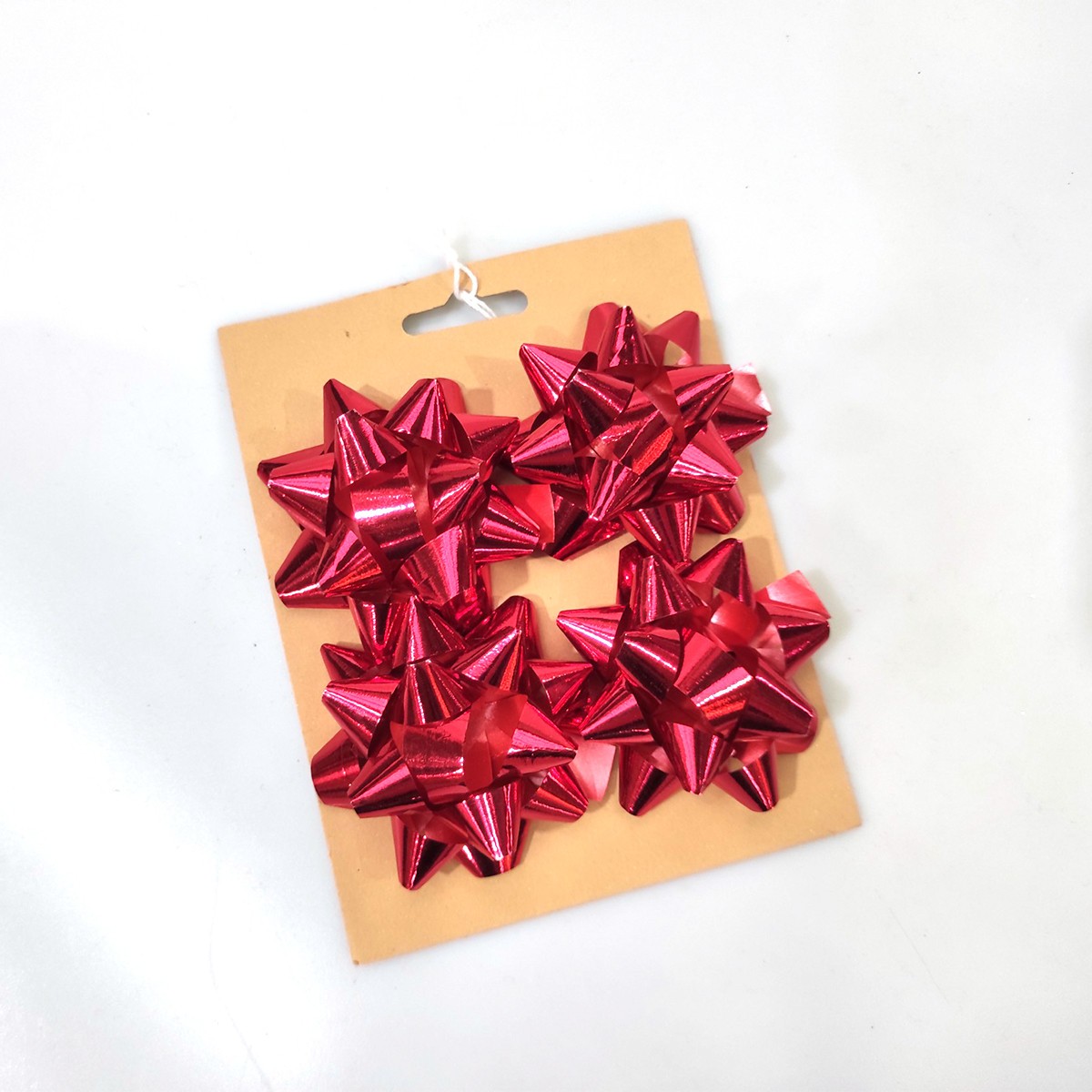 MercurySet composto da 4 coccarde natalizie rosse con diametro 6 cm. Confezione da 4 fiocchi di Natale per abbellire i pacchi dei tuoi regali di Natale.