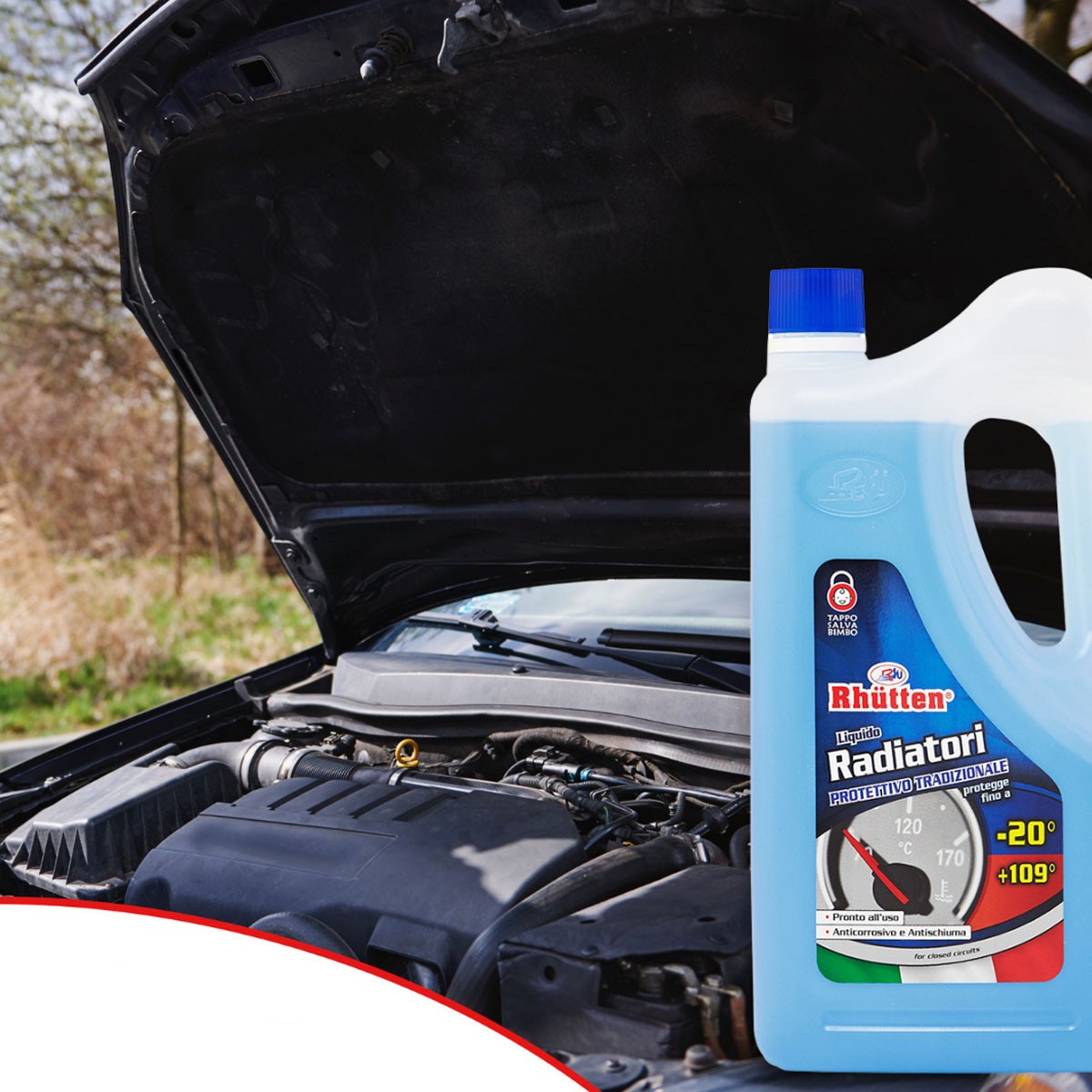 RhuttenLiquido radiatori blu antigelo -20°C 2L di Rhutten di tipo permanente per circuiti chiusi; protegge dal gelo fino a -20°C e, in condizioni di esercizio, allontana il rischio di ebollizione fino a +109°C.