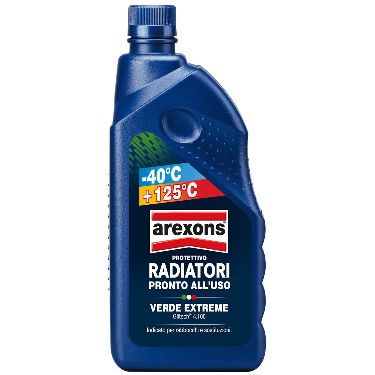 Liquido refrigerante Protettivo radiatori -40°C +125°C anticongelante 1L pronto uso Arexons 8070 verde extreme per circuiti di raffreddamento sia per motori benzina che diesel, la sua composizione gli consente di poter essere miscelato con tutti i liquidi antigelo già immessi nel circuito. Supporta un punto di congelamento -40°C, molto indicato in zone fredde.