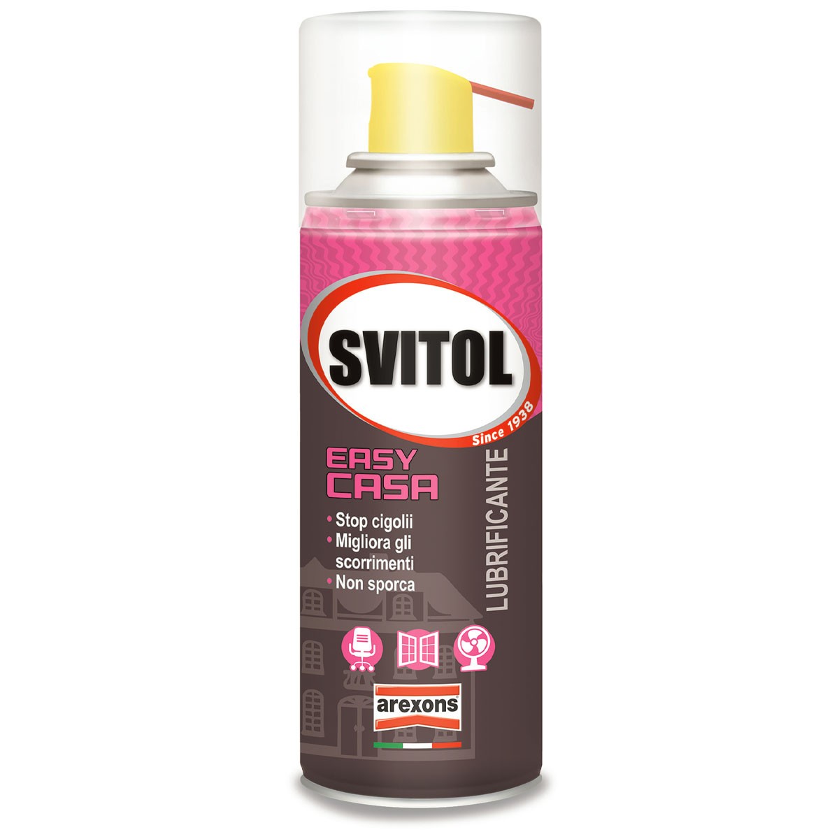 Svitol Casa spray 200ml lubrificante aerosol 2322 si adatta alle esigenze di professionisti, hobbisti e per le piccole manutenzioni di casa; non cola, lubrifica ed è sicuro su tutti i tipi di materiale. La valvola a 360° permette di erogare da tutte le posizioni, anche con valvola capovolta.