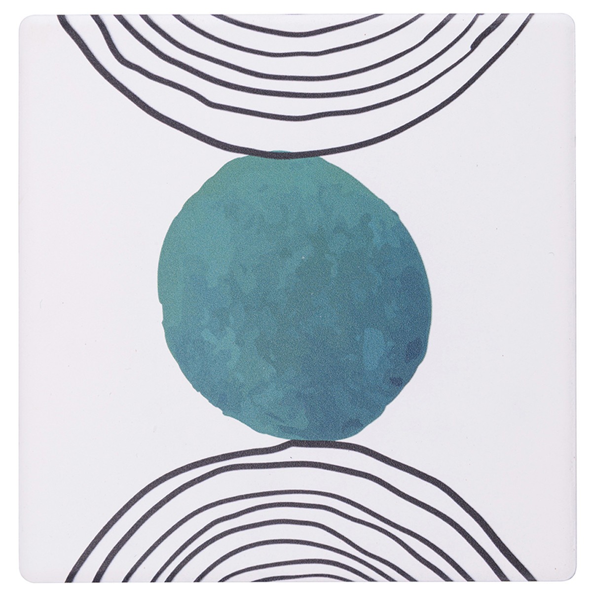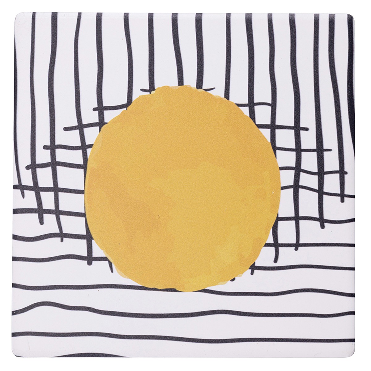 Sottobicchiere quadrato in ceramica linea Venice Lido di Villa d'Este con decorazioni astratte e una stesura irregolare del colore. Sottobicchiere in ceramica originale e colorato con fondo in sughero, ideale per la tua tavola estiva.