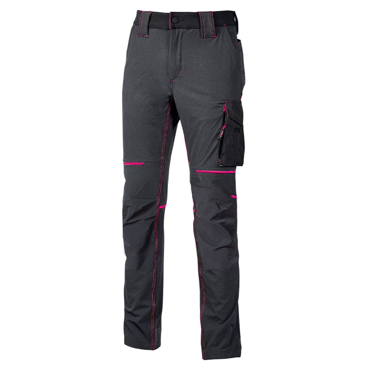 Pantalone da lavoro World Lady Grey Fucsia U-Power dotato di due ampie tasche anteriori, elastico in vita con un sistema innovativo di regolazione a scomparsa.