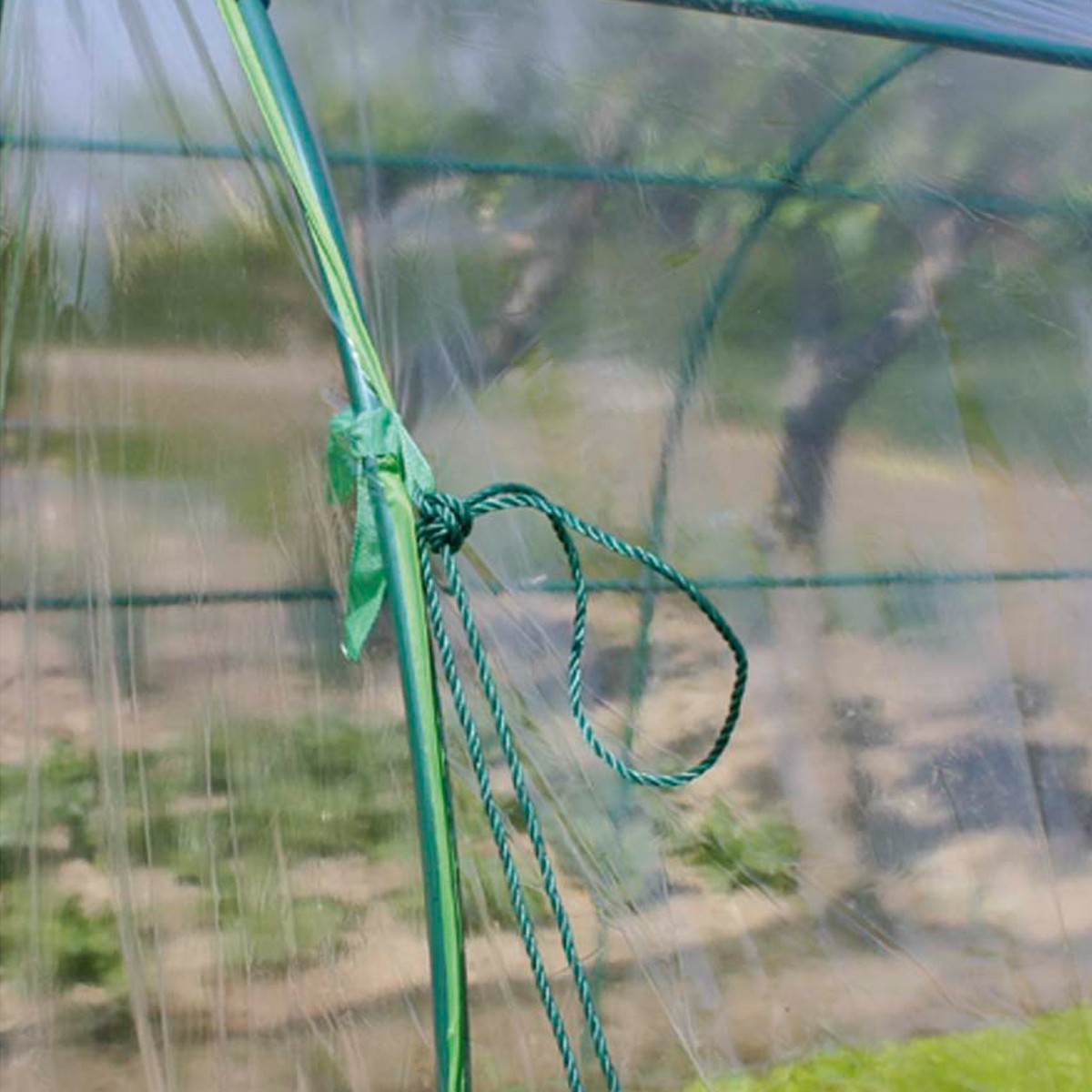 Serra per orto a tunnel Verdemax Premium comprende corde e picchetti di fissaggio al terreno per consentire una maggiore stabilità.